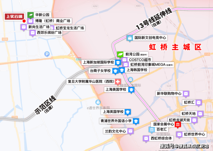 上实云端位于华新板块核心,与虹桥前湾地区核心直线公里,与虹桥核心区直线公里,可谓是近水楼台先得月.